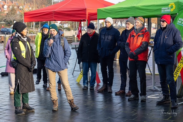 Am vergangenen Samstag, den 22.11.25 waren wir gemeinsam mit anderen Akteuren am Eckernförder Hafen um gegen die geplante Bauschuttdeponie im Eckernförder Umland zu protestieren. Mit dabei waren auch viele Aktive aus dem ganzen Kreisverband, obwohl gleichzeitig noch Landesparteitag in Neumünster war. Dankeschön!
