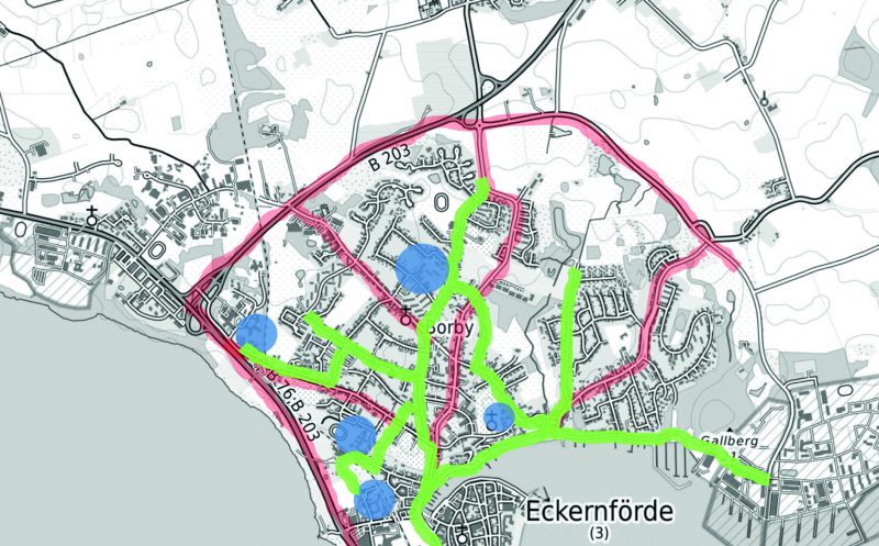 Eckernförde ist eine Stadt der kurzen Wege und mit hoher Aufenthaltsqualität. Dies gilt es zu erhalten und auszubauen. Der Verkehr soll um die Innenstadt herum geführt werden (Ringprinzip) – keine Abkürzung führt mitten durch die Stadt.